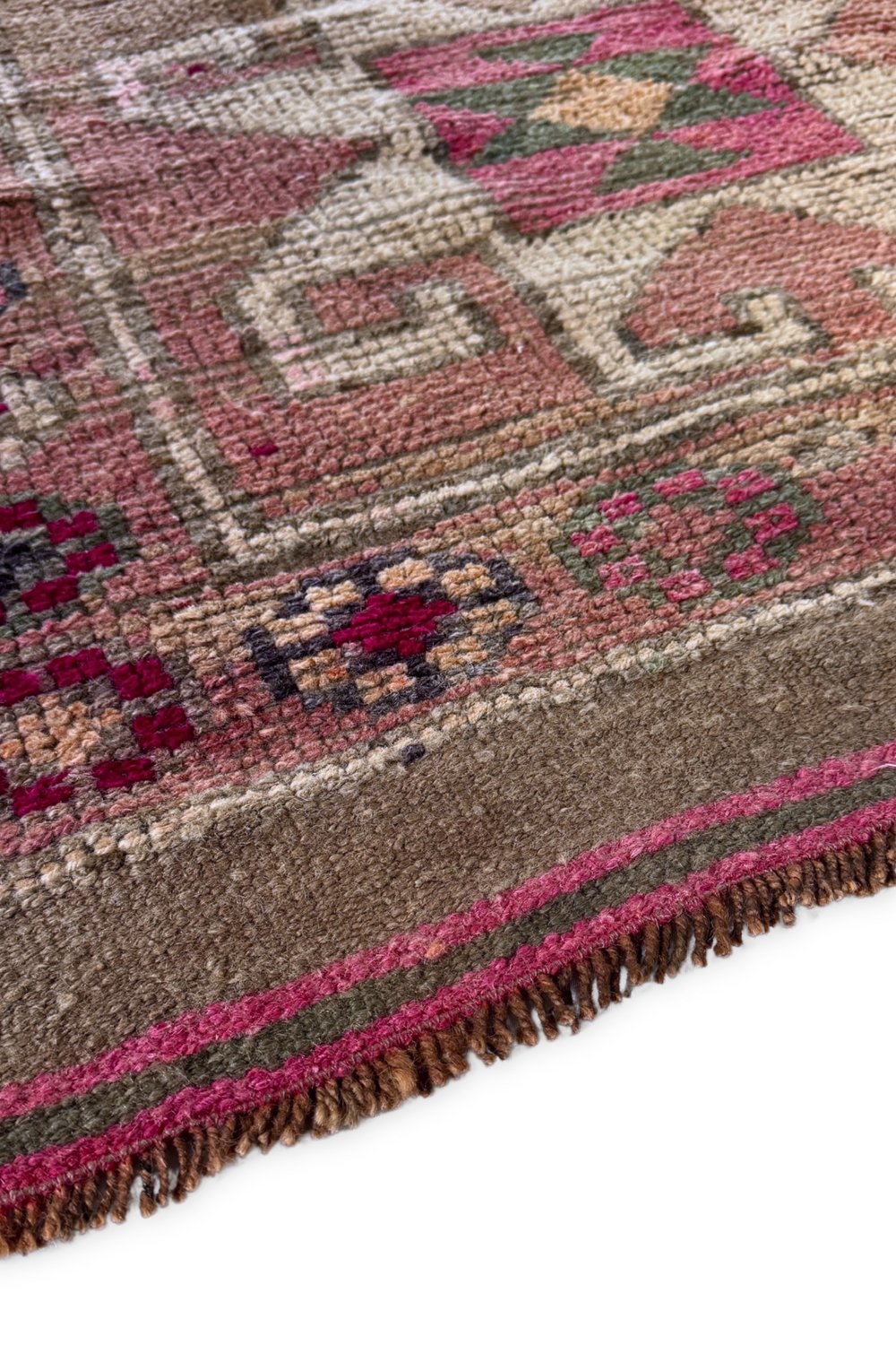 With its colorful geometric pattern in varying shades of fuchsia and cream, this vintage runner transforms a space. It’s just the right size for a hallway or entryway, and also adds a delightful pop of color to a kitchen.