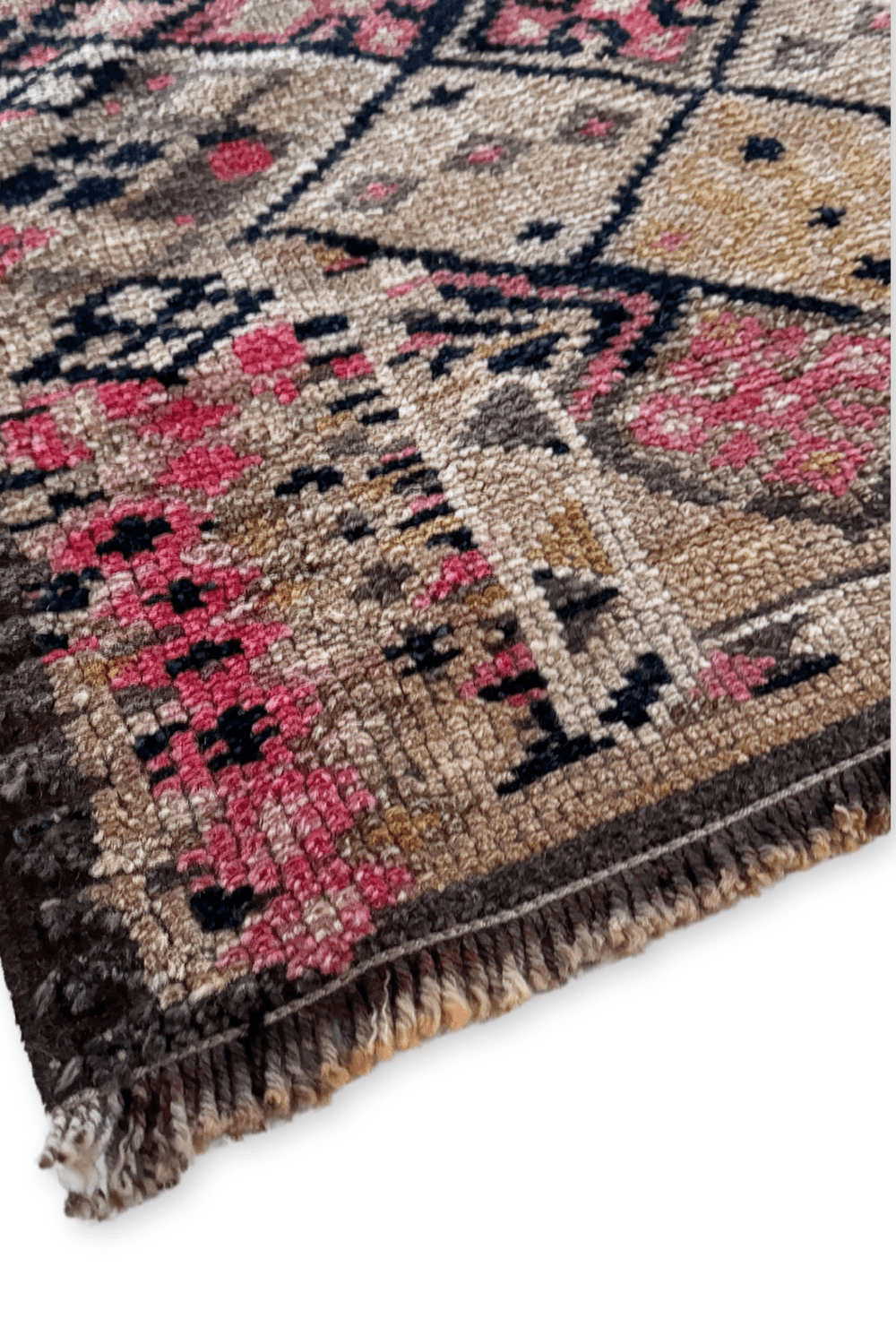 With a dynamic diamond pattern and a beautiful array of colors, this handwoven vintage runner is a unique piece of art for your floor.