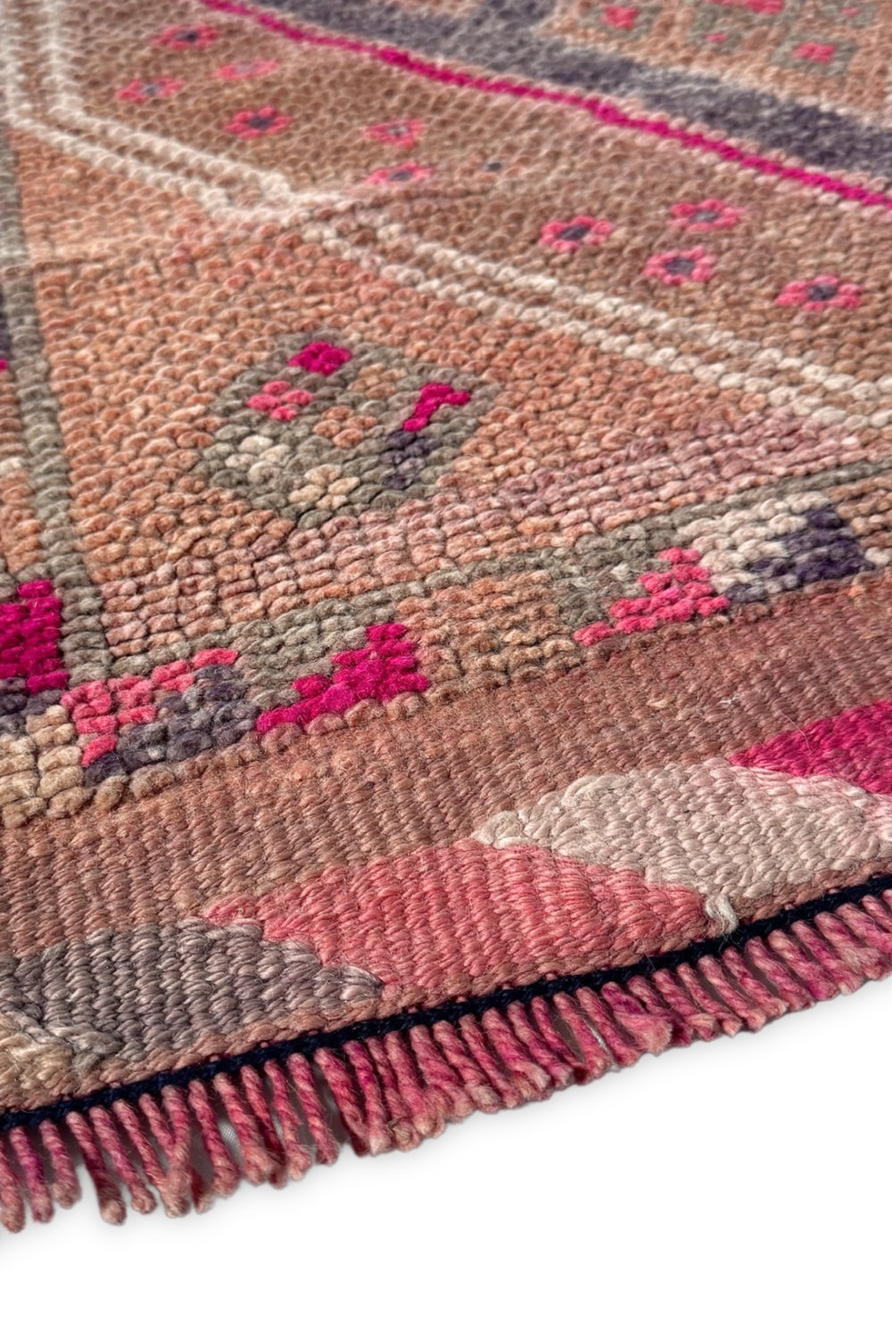 With a dynamic diamond pattern and a beautiful array of colors, this handwoven vintage runner is a unique piece of art for your floor.