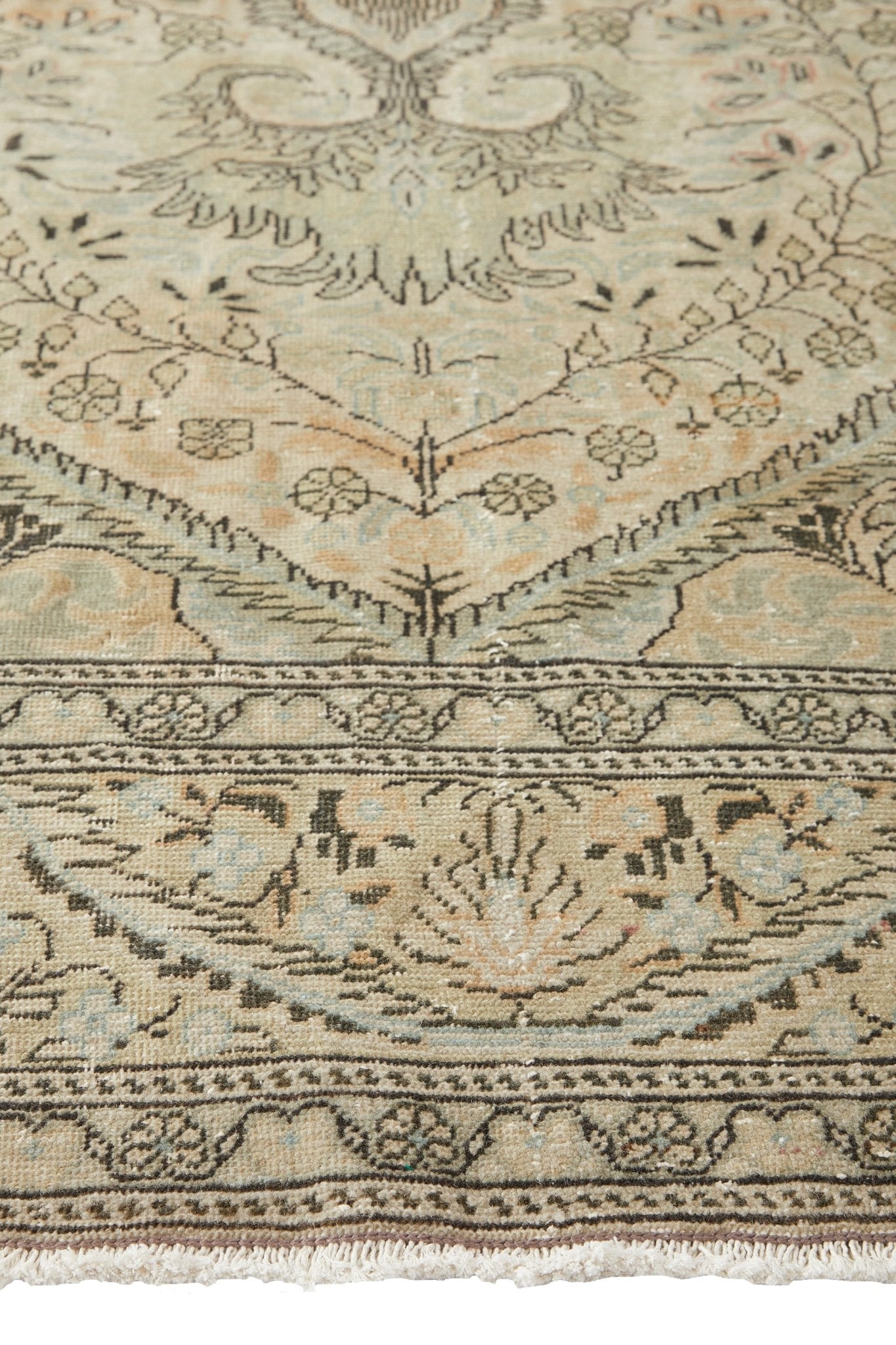 With its traditional pattern, Artemisia is a well-worn rug with a beautiful floral base. This size would be a great addition to any room. It has a distinct design and is one of a kind.