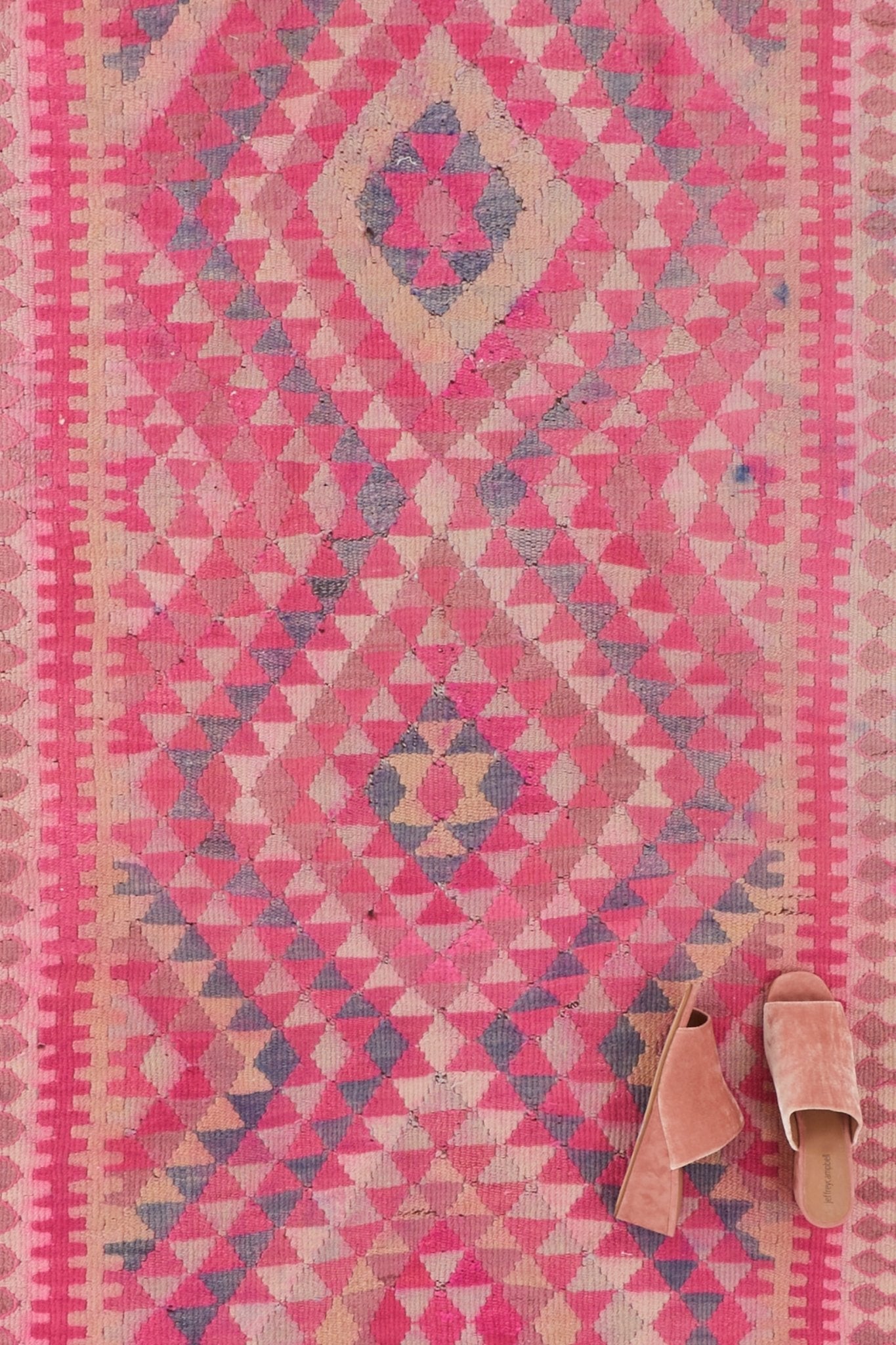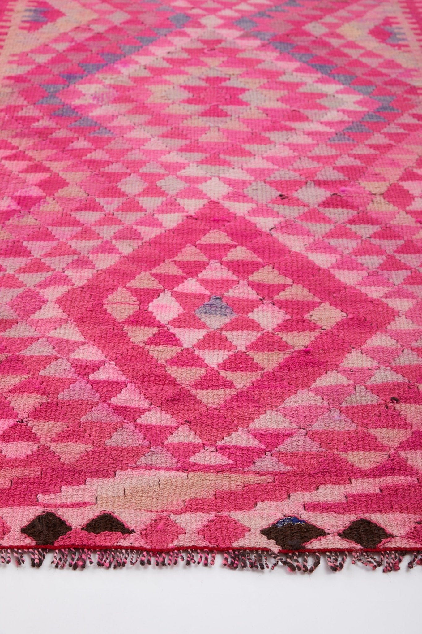 With its colorful diamond pattern in shades of pink, 'Aya' transforms a space. The pattern tells a story that a weaver crafted by hand many years ago. This extra long runner would look amazing in a long hallway!