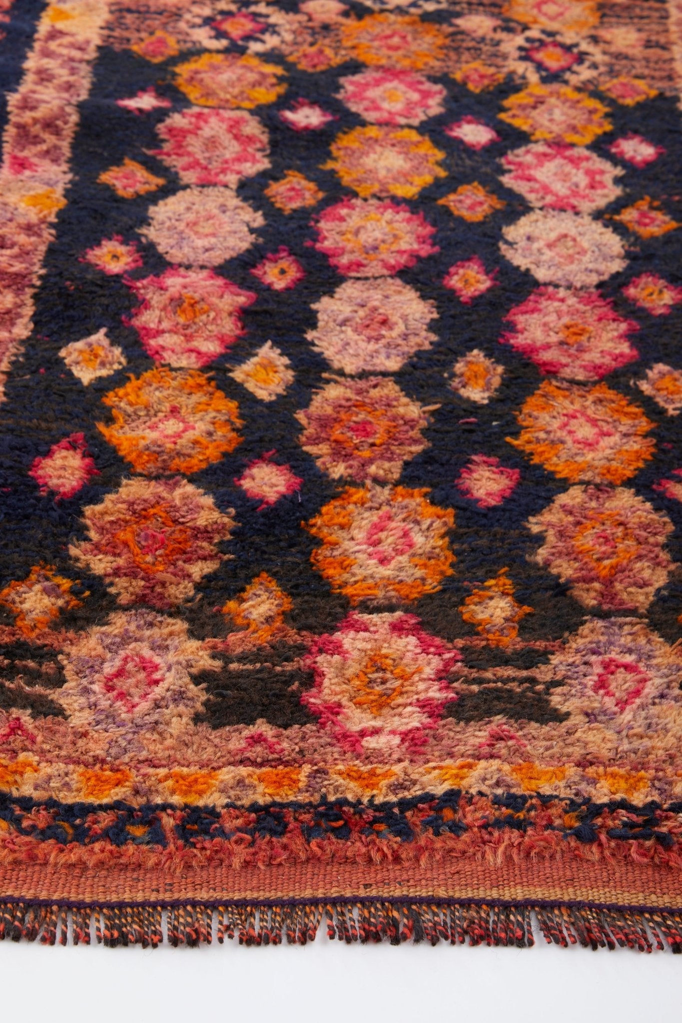 The 'Hydra' vintage Turkish rug transforms a space with its intricate pattern in varying shades of pink, blush, and orange. It is just the right size for a hallway or entryway, and also adds a delightful pop of color to a kitchen.