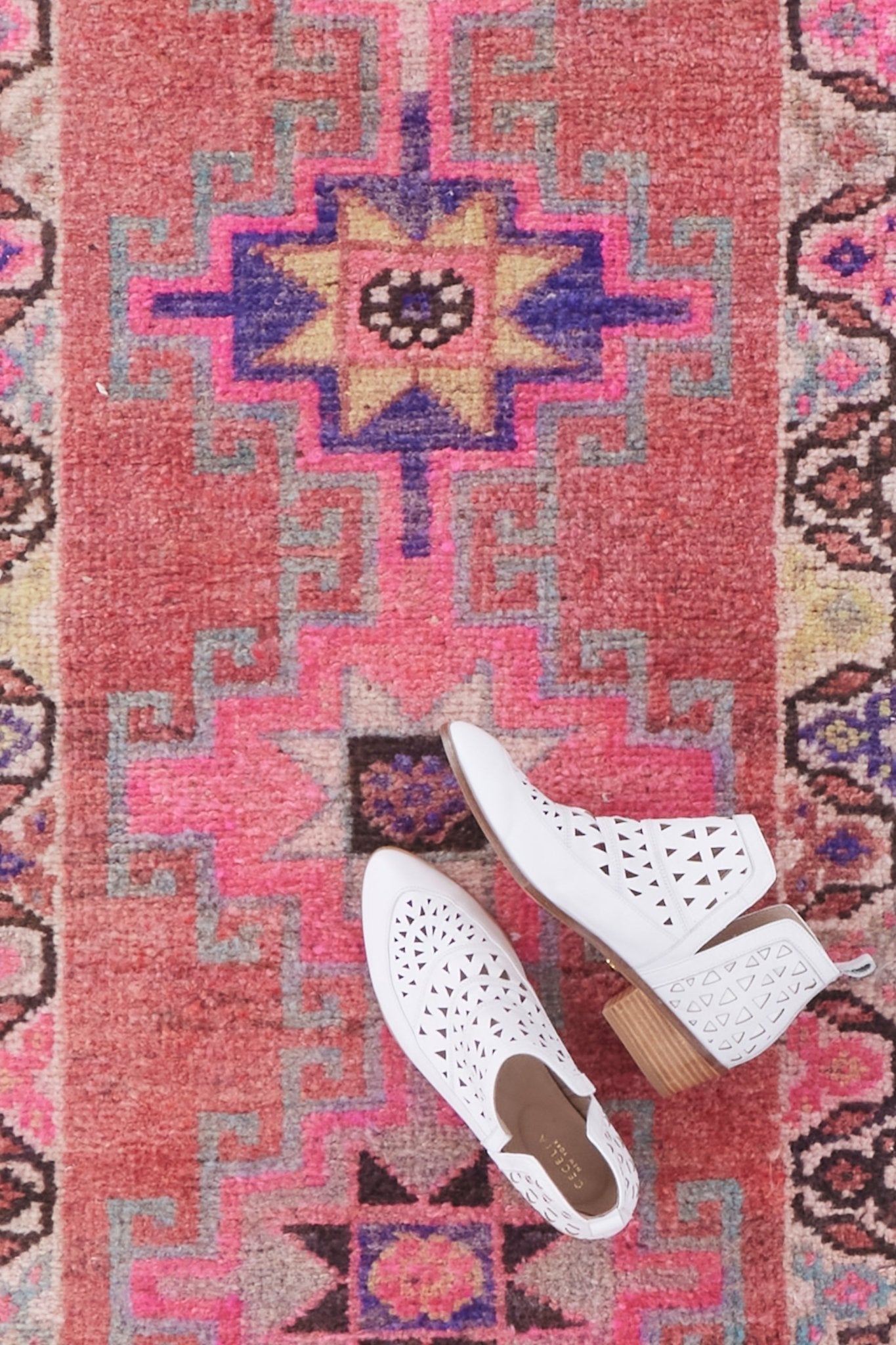 With its intricate pattern in varying shades of pink and purple, Lola transforms a space. The intricate pattern tells a story that a weaver crafted by hand many years ago. It's the perfect size for a hallway or entryway, and also adds a delightful pop of color to a kitchen.